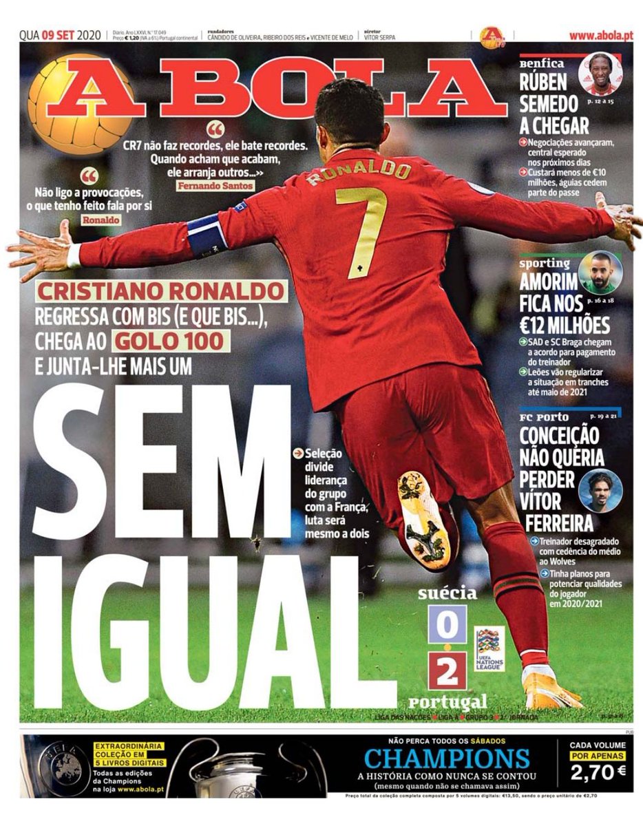 Cristiano ronaldo ha llegado a 101 goles con la seleccion de portugal gracias a su doblete ante suecia en la liga de naciones.