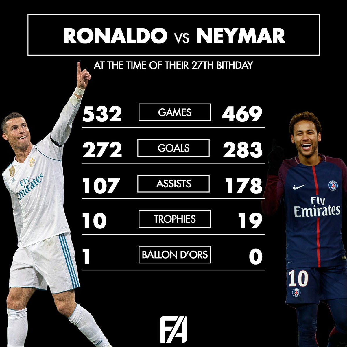 Footy Accumulators On Twitter Cristiano Ronaldo V Neymar At 27 Years Of Age Is Neymar Underrated Due To Him Being A Bit Of A Tosser