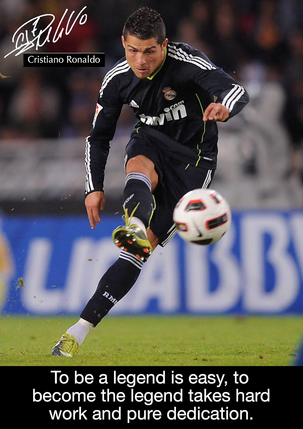 Cristiano Ronaldo 76 Motivational Live The Dream Quote Signed Copy A3 Poster World Player Of The Year Football Real Madrid Logo Background A3 Poster Print Picture Amazon Co Uk Kitchen Home