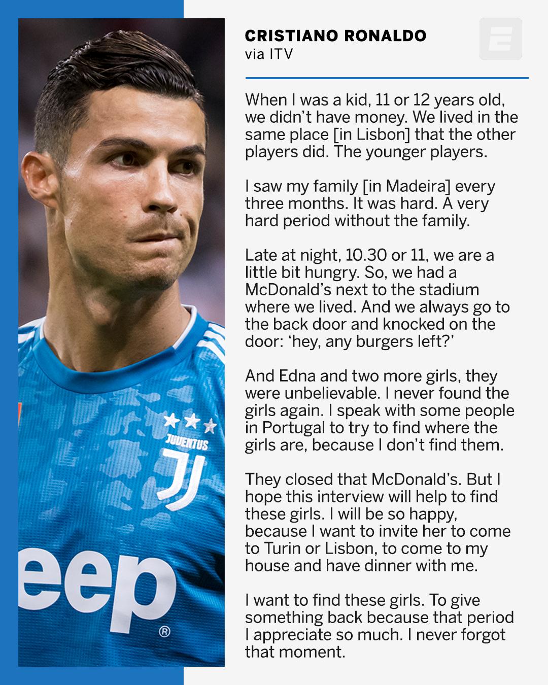 Cristiano Ronaldo Searching For Woman Called Edna Who Gave Him Leftover Mcdonald S Hamburgers When He Was A Child With No Money