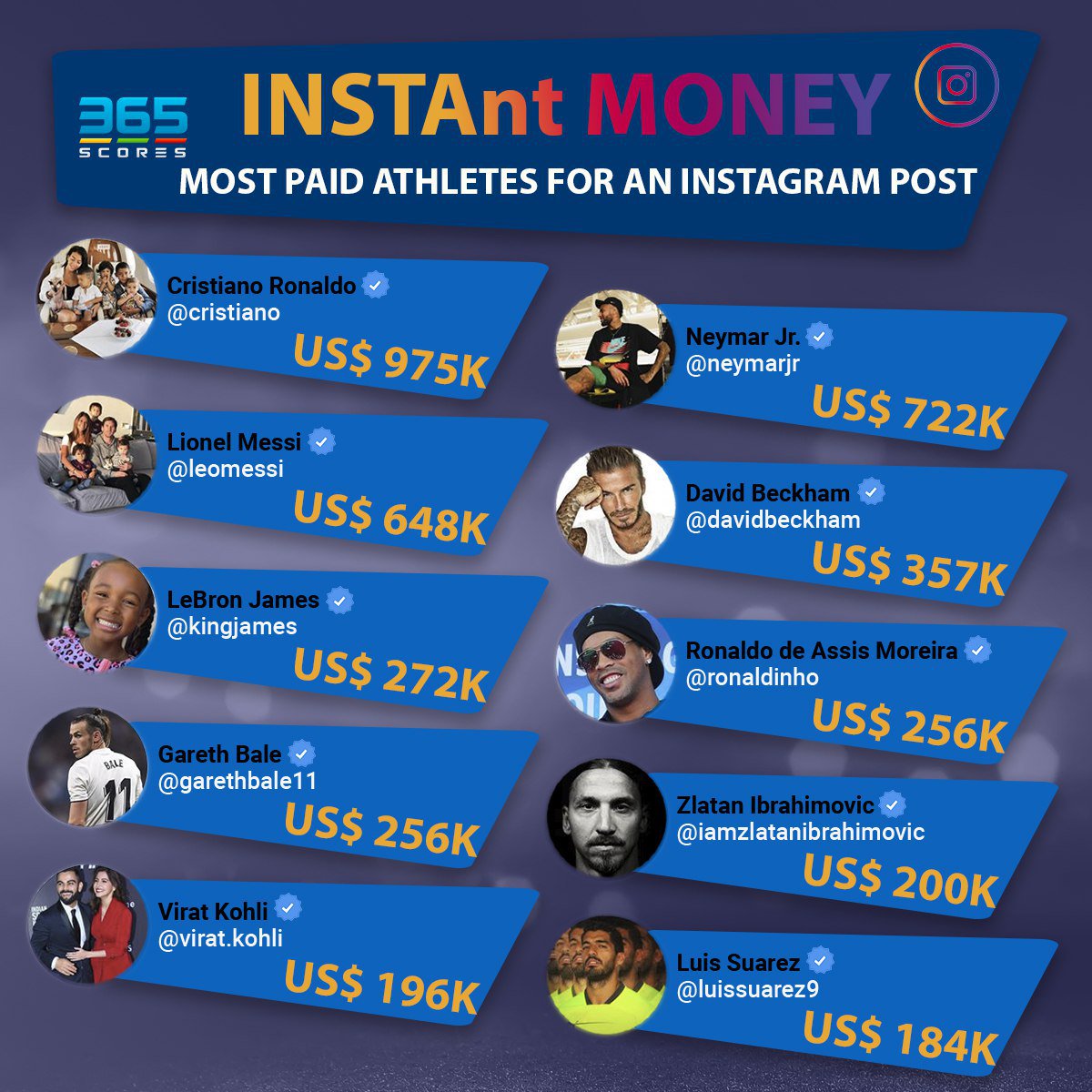 10 Highest Earning Athlete On Instagram Cristiano Ronaldo Ahead Of Messi And Neymar After Making Estimated 1 9m Kokolevel Blog