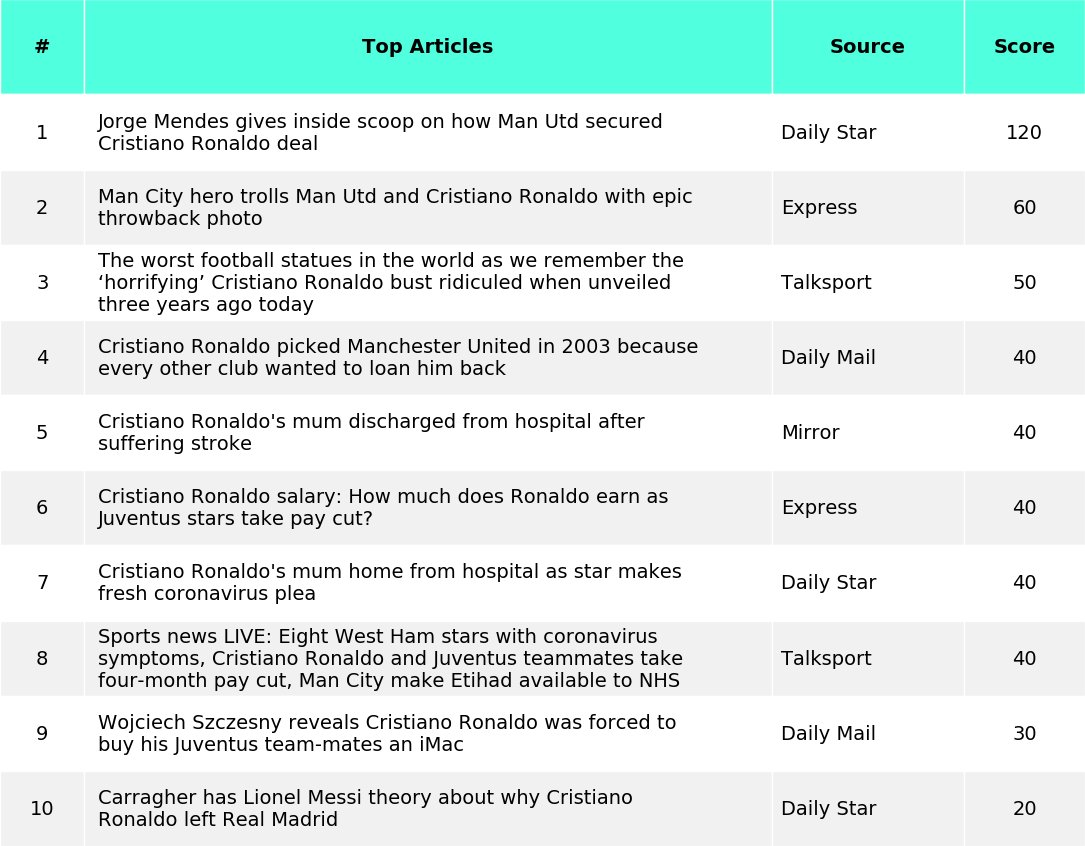 Indexgems Football Index On Twitter Media Mar 29 2020 Cristiano Ronaldo Mb Score 500 Pts Sources 5 Mentions 11 12hr 7 12 18hr 2 18hr 2 Breakdown Pts Daily Star 180 36 0 Talksport 110 22 0 Express 100 20 0