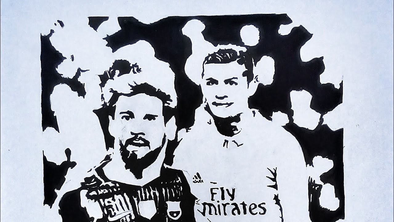 Bearded Man Stencil Portrait Artwork Fc Barcelona Messi Ronaldo Rivalry Drawing Fc Barcelona Transparent Background Png Clipart Hiclipart