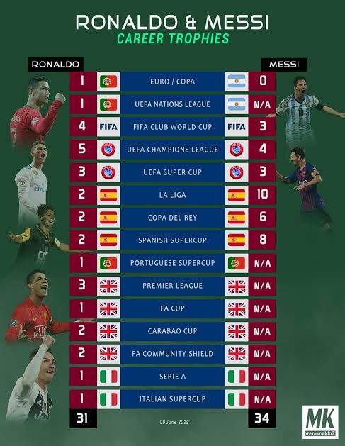 Lionel Messi Vs Cristiano Ronaldo All Time Goals International Records Awards And Trophies The Week Uk